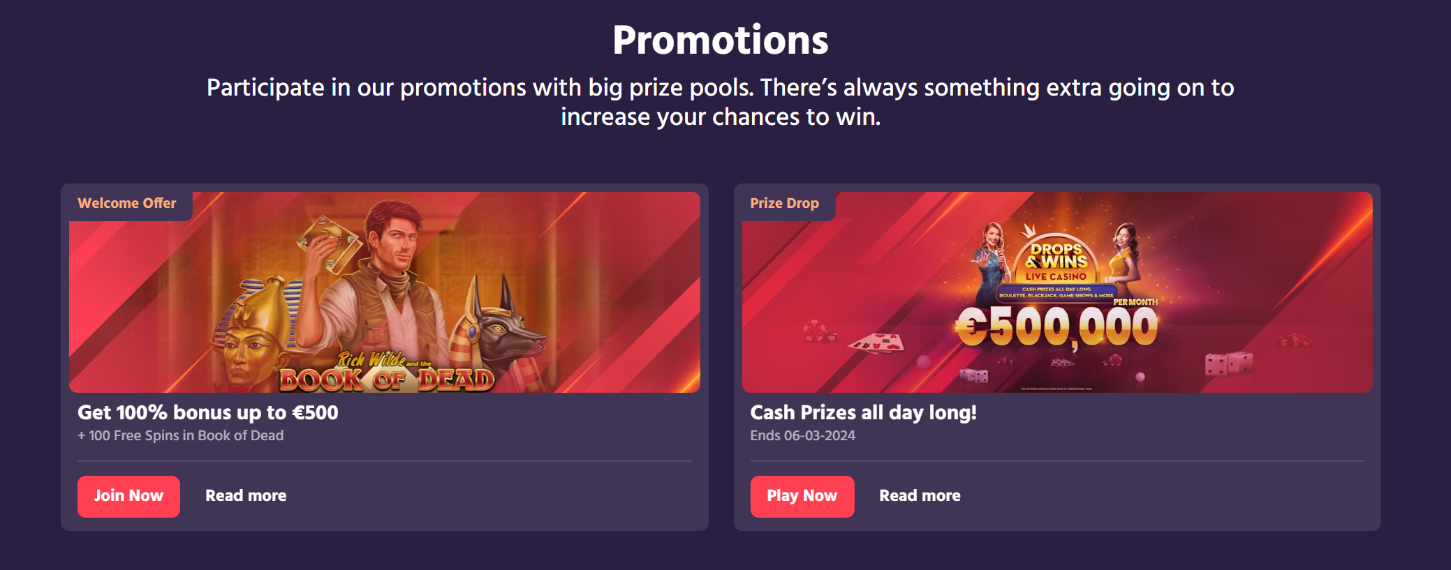 Get 100% bonus up to €500 + 100 Free Spins in Book of Dead