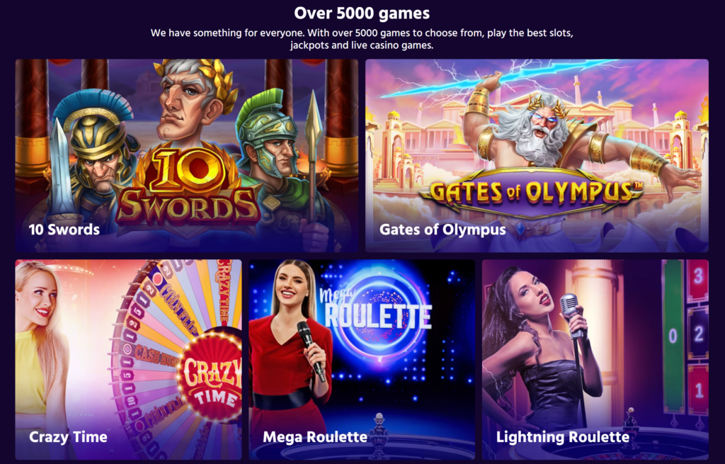 – Game selection: Slots, table games, live dealer games, and specialty games.