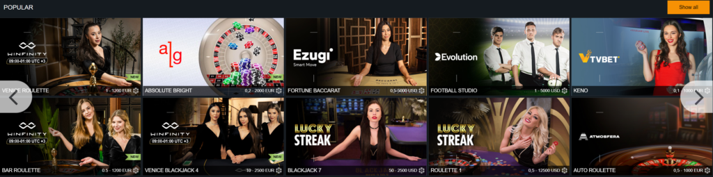 Paripesa India has an impressive Lobby with a wide array of table games. The games available include: – ● Table Games ● Live Dealers.