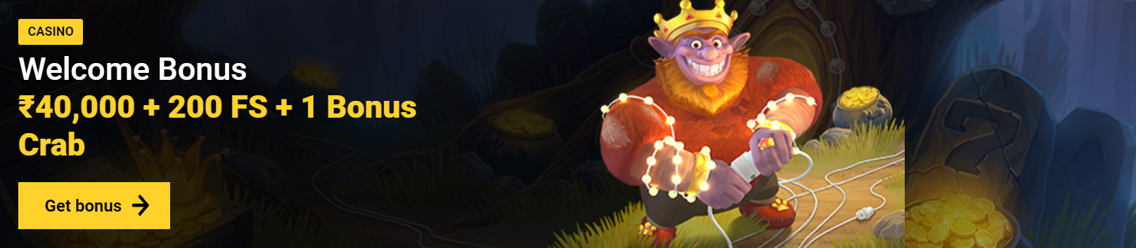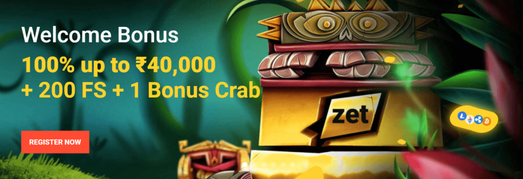 Welcome bonuses 100% up to ₹40,000 + 200FS + 1 Bonus Crab
